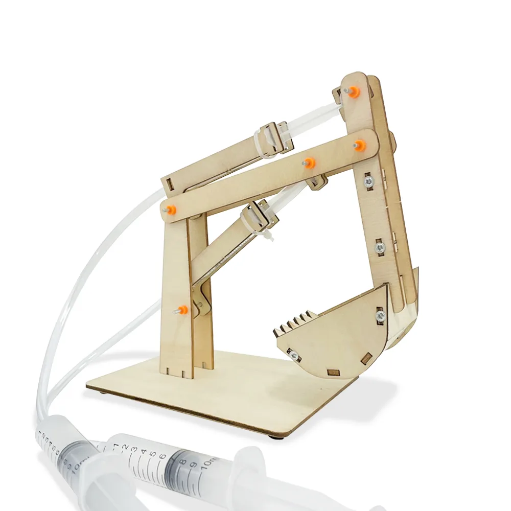 Build a hydraulic excavator that works syringes and air pressure.
