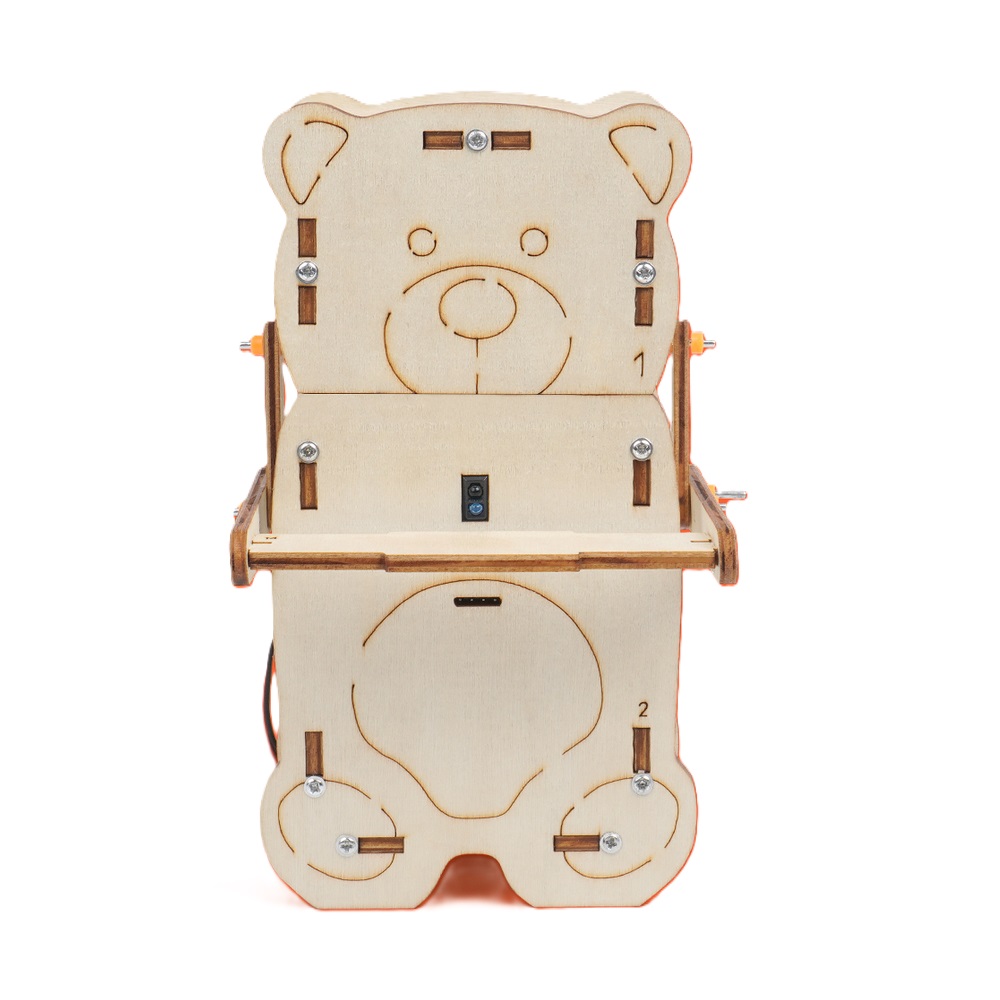This kit allows objects to be placed on the board in front of the bear, which will be recognized and placed in its stomach.